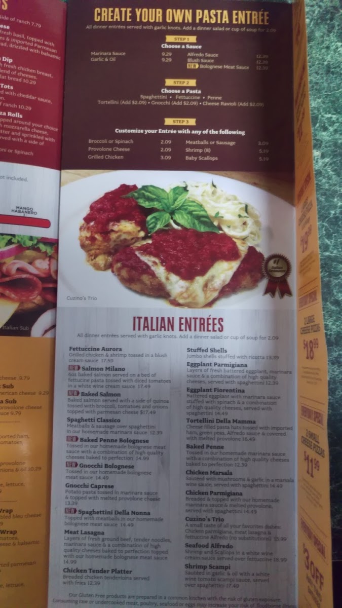 Don’t forget dessert! Their scrumptious New York Cheesecake and Chocolate Shell Cannoli provide the perfect sweet endings. Savor the flavors, enjoy the friendly service, and become a part of the Cuzino's family!